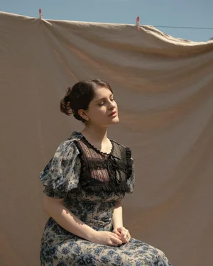 Want to look like you’re part of the high school’s production of Oklahoma? To perfect this Cassie look from the latest season of Euphoria find yourself a baby blue mini dress and blow out your hair!