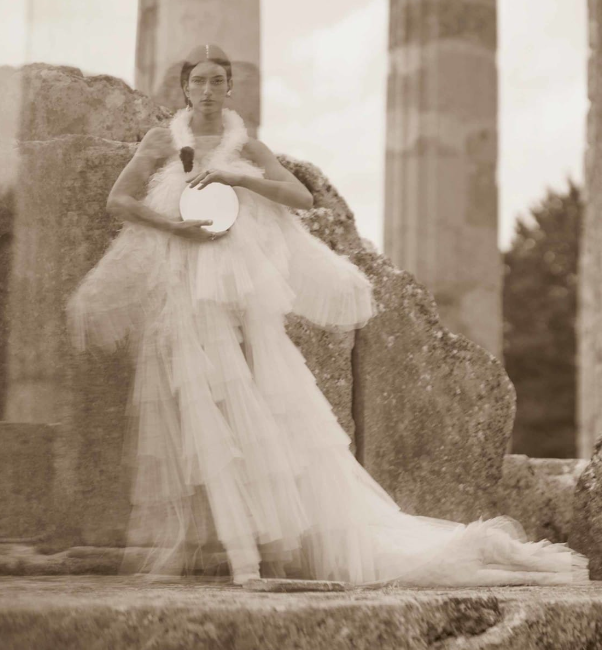 One of Dior’s most iconic campaigns was the 1951 Parthenon photoshoot, where models dressed in the now famous Dior 50’s full-skirt evening gown posed on the Acropolis against the ancient temples of Athena and Hephaestus.