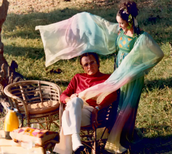 In Botswana in 1975, Liz and Dick married for a second time. For this occasion Taylor wore a very 1970s gown by the British designer Gina Fratini and wore her hair up in a relaxed manner.