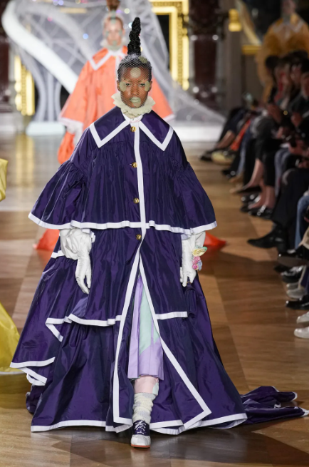 Thom Browne put Bella Hadid in a punk-meets-1930s-meets-goth-meets-Elizabethan ensemble which sounds ridiculous and yet somehow it worked.