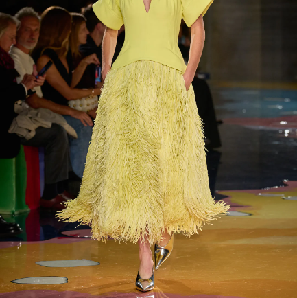 While some designers added fringe as the top note, Daniel Lee went all out at Bottega with a pale yellow dress with a full fringed skirt this fashion month!